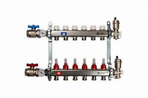 Коллектор на 6 выходов из нерж стали с кранами под м/п трубу 16мм