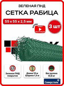 Сетка Рабица 1,5х 10м (ячейка 55х55) оцинк 2,5мм